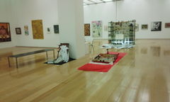 長崎県美術館の空気穴口を利用して赤い布(腰巻)が揺れるように仕掛けた。