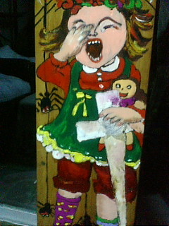 少女は十字架を持ち、抱いてる人形が死んだと思っているのか、埋めようとしているのでしょうか。
