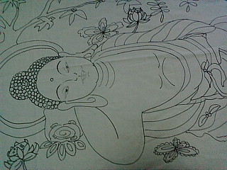14mの舟が2段になり、高いこともあり涅槃像にしましたが、なにより故人が「ゆっくり寝たいなァ~」と、言った言葉から、涅槃像を描いた。