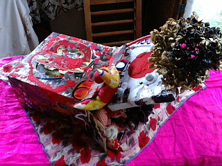 材料:壁紙ボード・麻紐・古写真・古布・