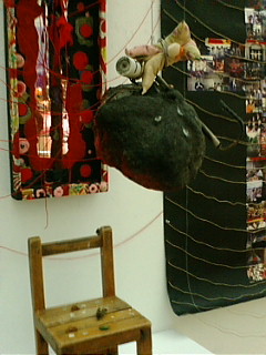 材料:こんくりーと・古電柱・古写真・保育園椅子・麻紐・蝉の抜け殻5こ・亡蝉2匹 ・暖房シート 他