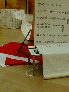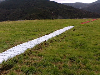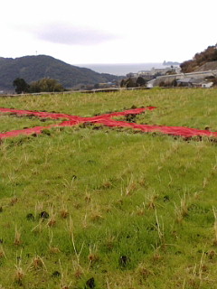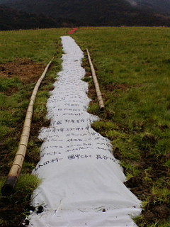 大中尾棚田アートに参加、47mの白い布に書きます。