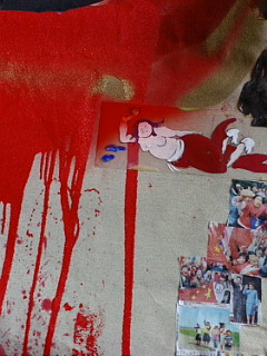 ⑤ 書いた布は土で汚れたり、風雨に当たっても、永遠に残ります。